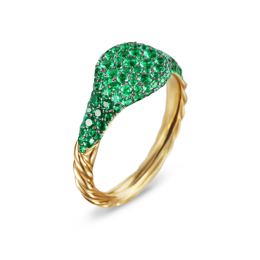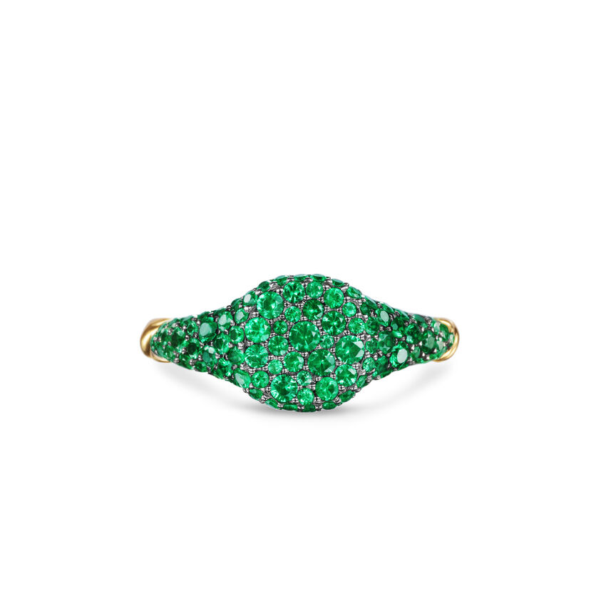 Petite Pavé Pinky Ring in 18K Yellow Gold with Emeralds, 7mm