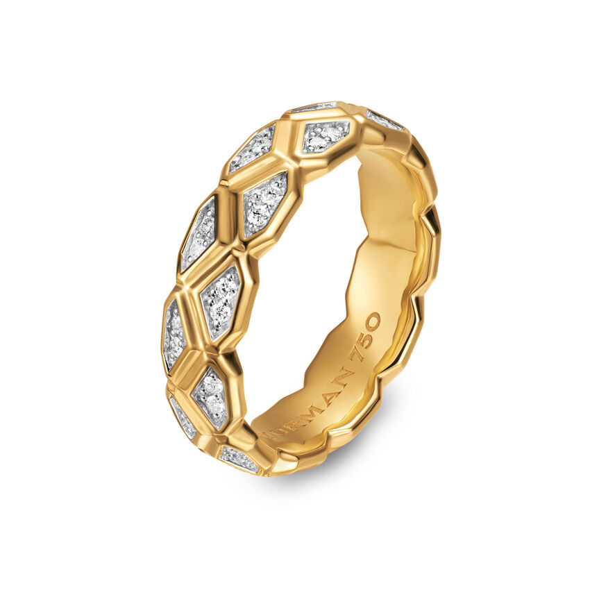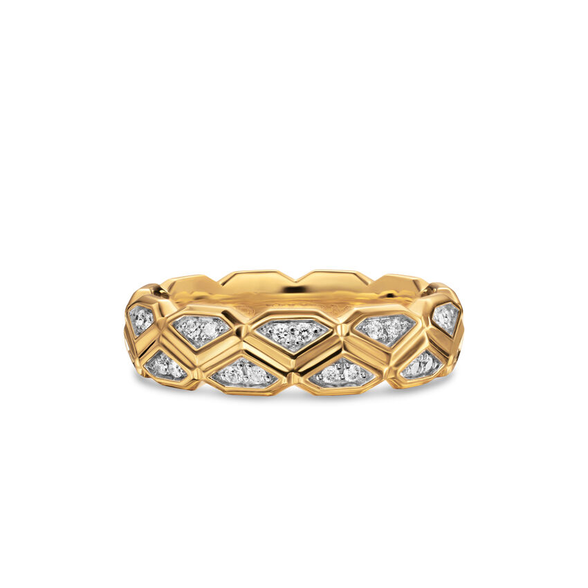 Hex Band Ring in 18K Yellow Gold with Diamonds, 6mm | Benari