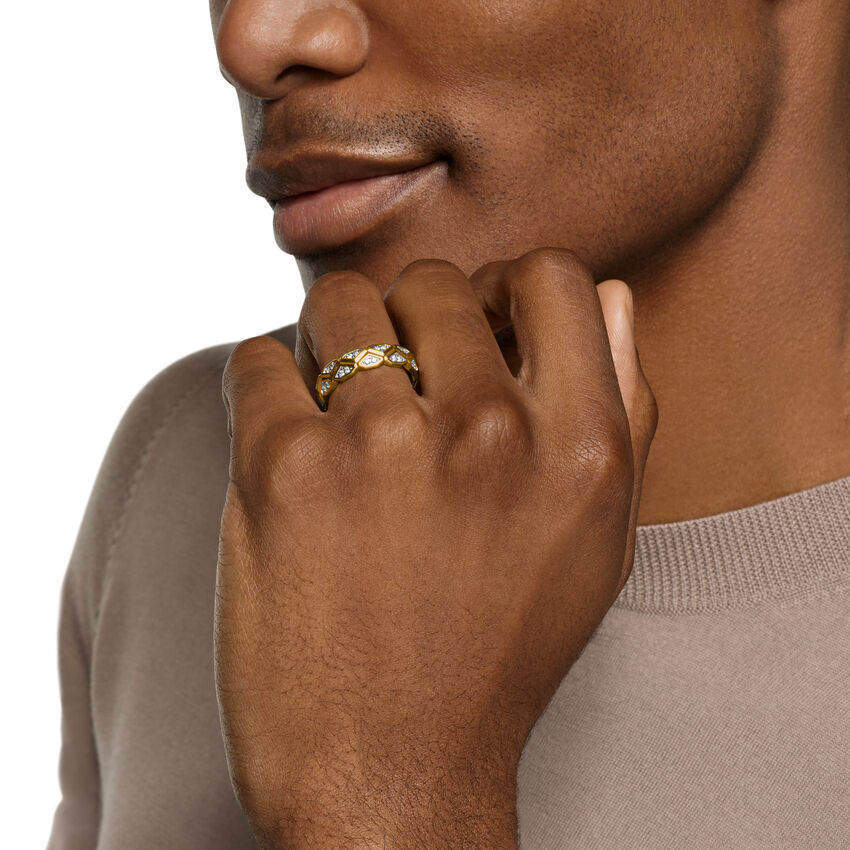 Hex Band Ring in 18K Yellow Gold with Diamonds, 6mm