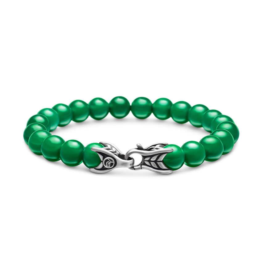 Sterling silver • Green onyx • Bracelet, 8mm • Lobster clasp-